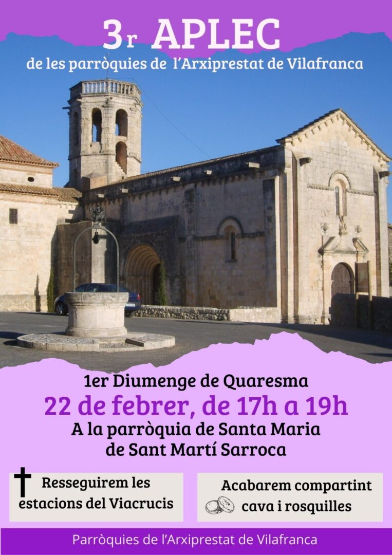 El proper dimecres comença la Quaresma amb el tradicional signe de la imposició de la cendra. La setmana que ve oferirem propostes per viure intensament aquest temps litúrgic. Avui, però, a més a més de les celebracions del Dimecres de cendra, recordem especialment que el primer diumenge de Quaresma (per tant, diumenge vinent 22 de febrer) celebrarem, per tercera vegada, l’Aplec Arxiprestal amb un Viacrucis preparat per les diverses parròquies; aquest any serà a Sant Martí Sarroca. Una iniciativa per potenciar la comunió i el treball pastoral a l’Arxiprestat, en la línia de la sinodalitat i la missió compartida; no hi faltem!